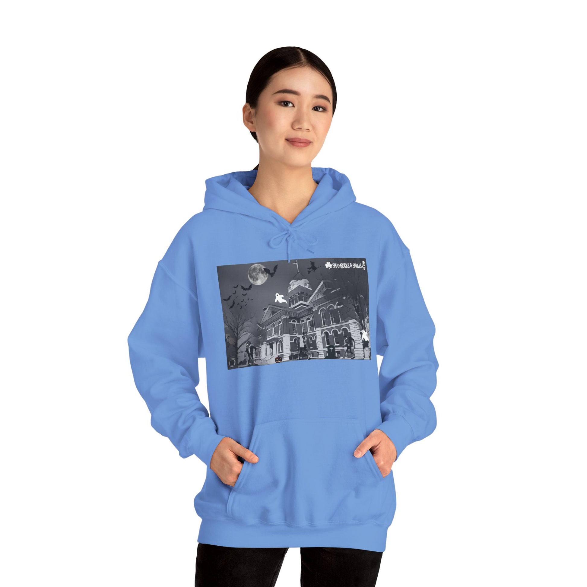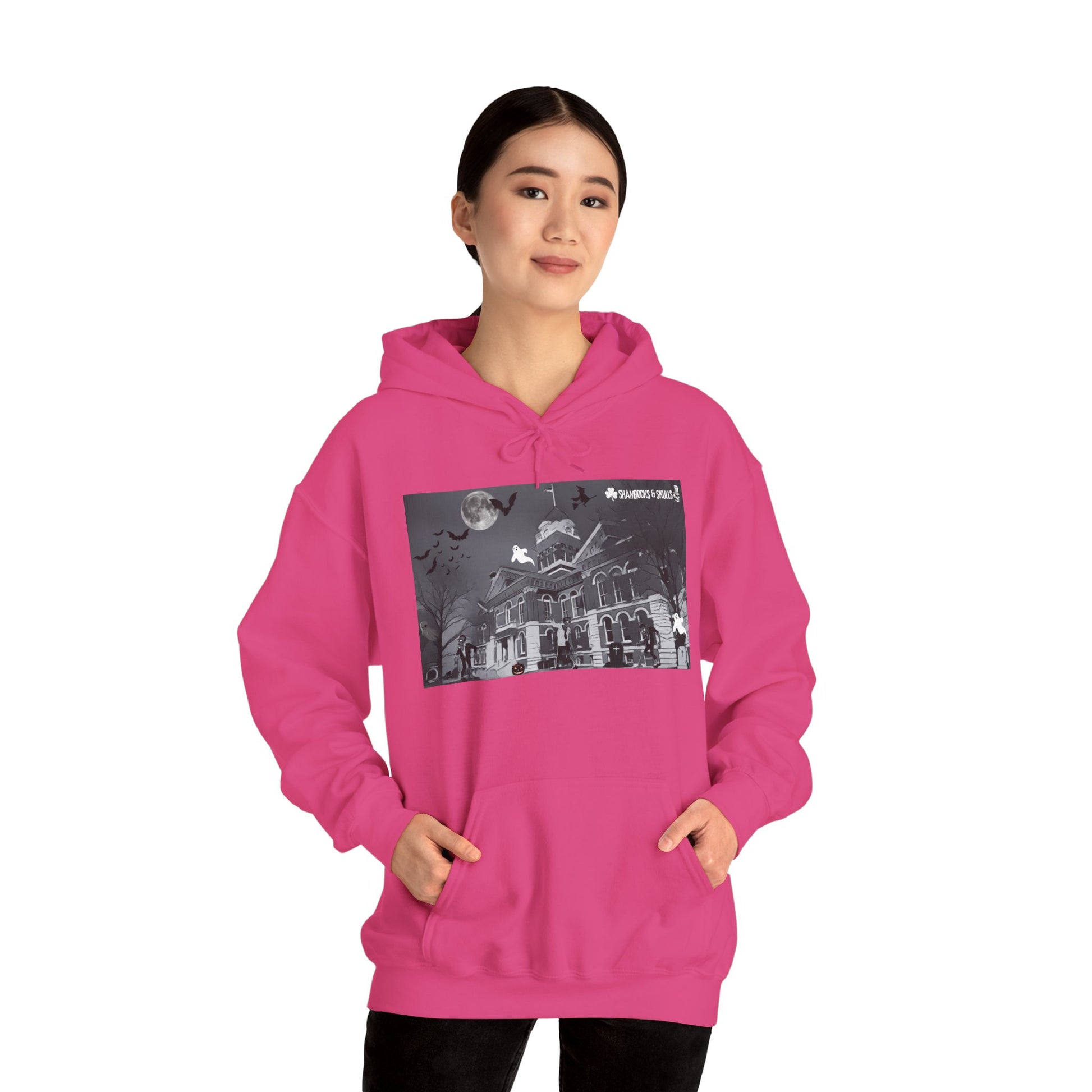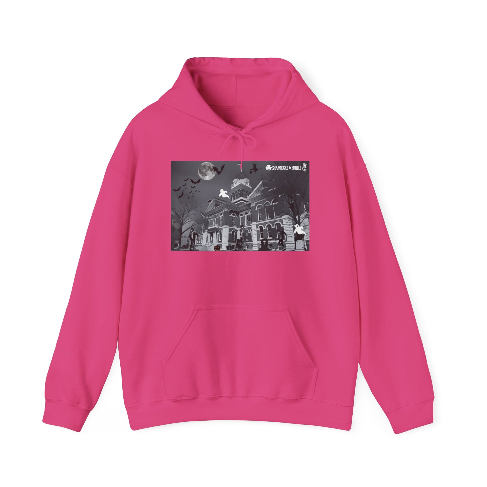 This unisex heavy blend hooded sweatshirt is relaxation itself. Made with a thick blend of cotton and polyester, it feels plush, soft and warm, a perfect choice for any cold day. In the front, the spacious kangaroo pocket adds daily practicality while the hood's drawstring is the same color as the base sweater for extra style points.
