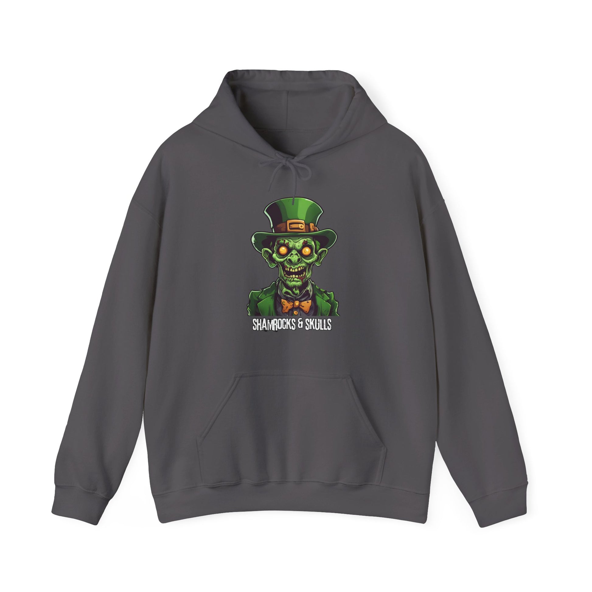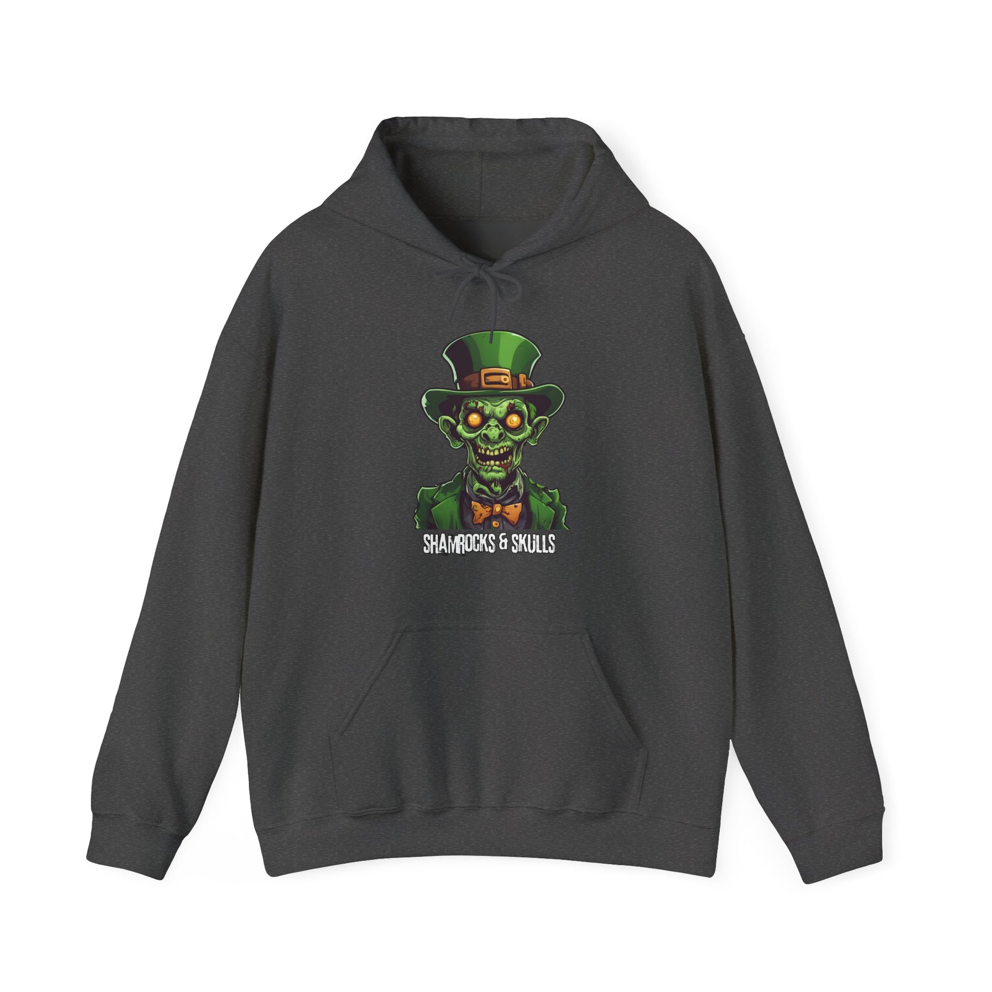 This Zombie leprechaun hoodie gives off a quirky and spooky vibe, making it perfect for Halloween and St Patrick's Day enthusiasts or fans of the supernatural. Stay cozy and warm with the spacious pockets and adjustable hood. Great for adults looking for a unique and fun addition to their wardrobe.